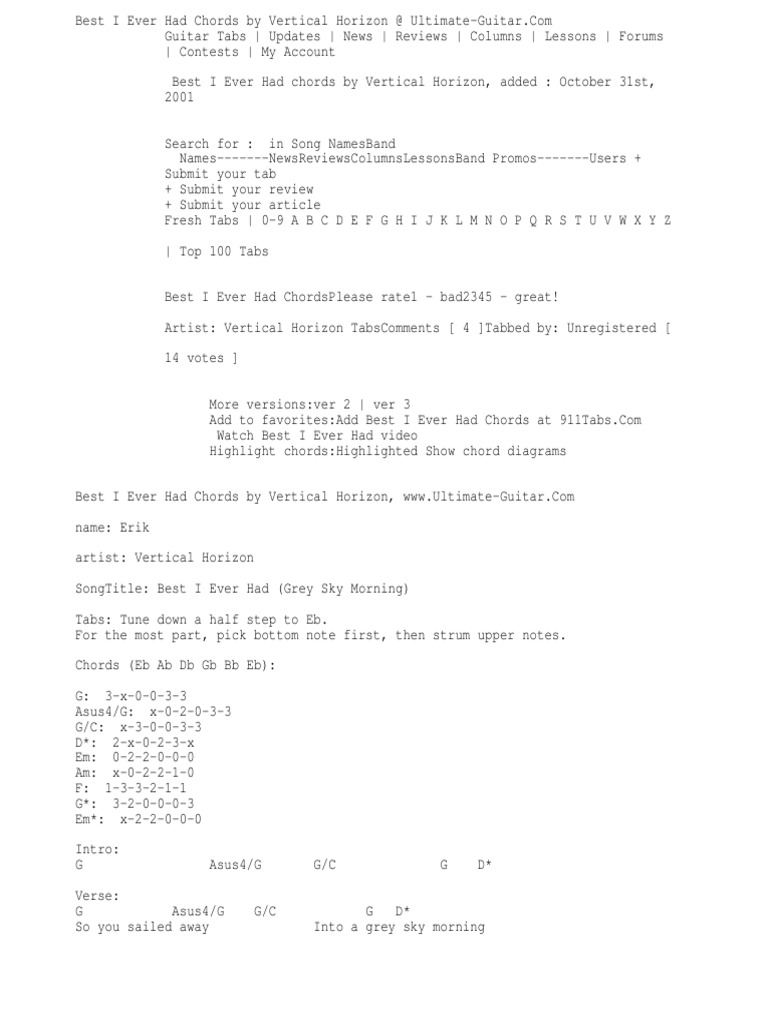 Sending in the weather Make yourself feel better. 12 rows Vertical Horizon Everything You Want Best I Ever Had So you sailed away Into a grey sky.