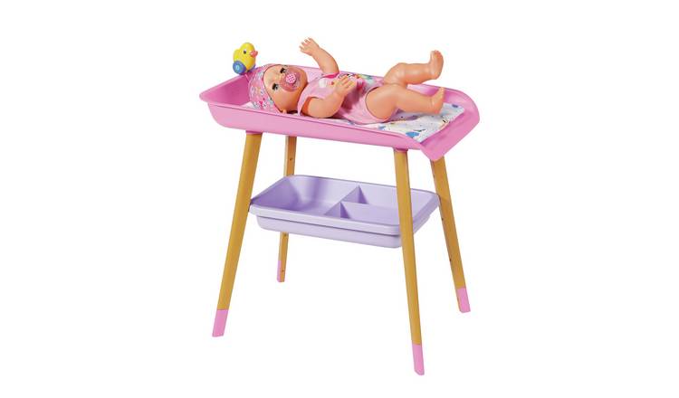 Plastic changing table with openclose door to store accessories and open cabinet with 2 hangers to hang your babys clothes up. Sold and shipped by Gear Up Guide. Little girls can change their babies on this scaled-down white changing table. BABY born Changing Table with removable towel holder Role play with BABY born boosts the imagination and supports the development of creativity and a sense of adventure. It has a bottom shelf for storing doll supplies and a foam changing pad on top. Advantages Of Doll Changing Tables. Choose from Same Day Delivery Drive Up or Order Pickup plus free shipping on orders 35. Baby Changing Units and Changing Tables. Change Tables Change Mats Price 10 - 20 3 30 - 40 1 over 100 2 Rating up 3 Refine by Rating.