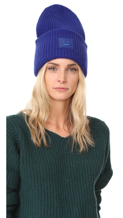 Acne Studios Hat BlueSizeS International. For the best experience on our site be sure to turn on Javascript in your browser. Navy blue wool face-patch knitted beanie from ACNE STUDIOS featuring signature face patch turn-up brim ribbed knit and stretch design.